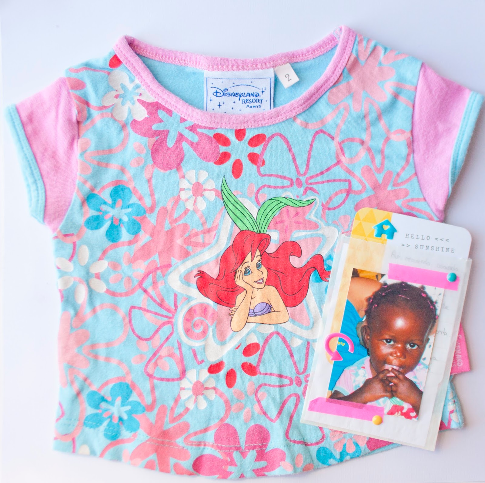 Así que esa anécdota la recordamos con mucho cariño y en vez de tener ese recuerdo tan lindo guardado en una caja, que mejor manera que inmortalizarlo con un Layout , Donde he puesto la camiseta, una foto de mi nena con su camiseta y debajo un sobre transparente con una tarjeta de project life contando un poco la historia! Es una forma bonita de guardar recuerdos! Espero os haya gustado, mil besitos!